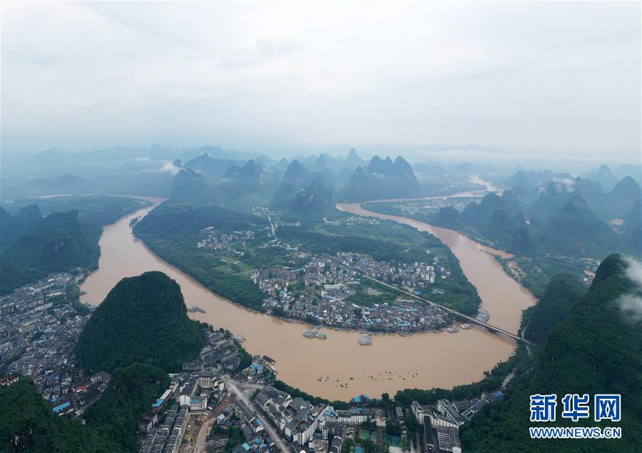 這是洪水奔流的漓江流過廣西陽(yáng)朔縣境內(nèi)(6月8日攝,無人機(jī)照片)。6月6日至8日,廣西陽(yáng)朔縣普降暴雨,局部降特大暴雨,全縣9個(gè)鄉(xiāng)鎮(zhèn)出現(xiàn)洪澇災(zāi)害。目前,全縣正有序開展災(zāi)后生產(chǎn)生活恢復(fù)。新華社記者陸波岸攝