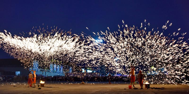 2020年6月7日晚8時(shí)許,吉林長春青岡立交橋附近,6月7日晚8時(shí)許,吉林長春青岡立交橋附近,臺(tái)北大街夜市,近千市民現(xiàn)場(chǎng)圍觀;古老打鐵花技藝首現(xiàn)長春,1700度鐵水空中開花,現(xiàn)場(chǎng)市民大呼過癮!這支來自河北滄州的神韻打鐵花表演隊(duì)全國各地走穴演出。據(jù)表演隊(duì)隊(duì)長朱震介紹,打鐵花是流傳于豫晉地區(qū)的民間傳統(tǒng)煙火,是國內(nèi)僅存的大型漢族民間傳統(tǒng)焰火。起源于北宋,鼎盛于明清,至今已有千余年的歷史,如今卻瀕臨失傳。2008年,打鐵花技藝被列入國家級(jí)非物質(zhì)文化遺產(chǎn)名錄。