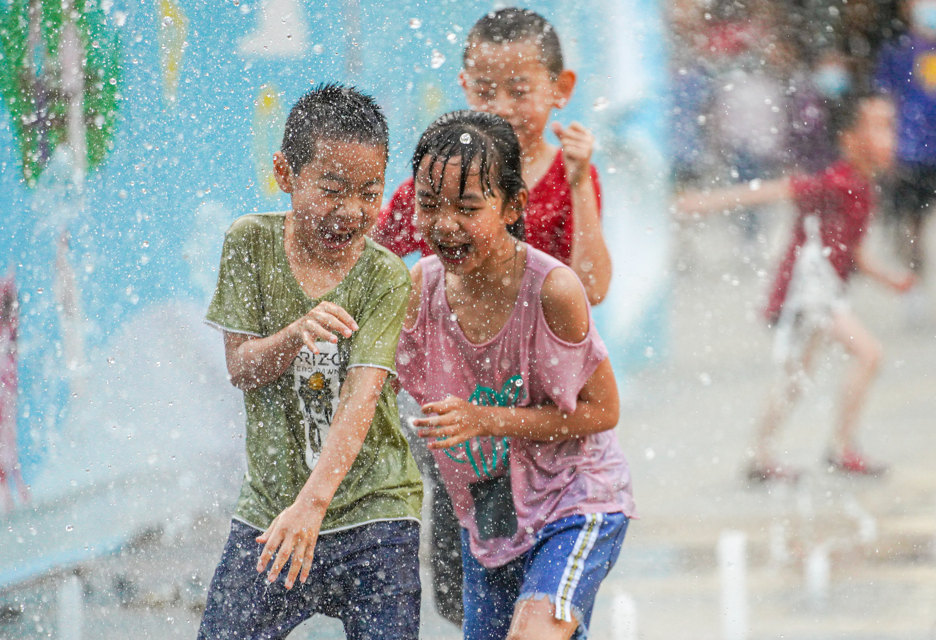 2020年6月9日?qǐng)?bào)道,近期,今年以來最大范圍高溫天氣“炙烤”北方,多地高溫屢創(chuàng)紀(jì)錄,中央氣象臺(tái)已連續(xù)3天發(fā)布高溫預(yù)警,同時(shí),高溫少雨也導(dǎo)致一些地區(qū)出現(xiàn)嚴(yán)重旱情。圖為2020年6月4日,北京三里屯噴泉廣場,很多孩子聚集在此,水中玩耍異?;鸨?/p>
