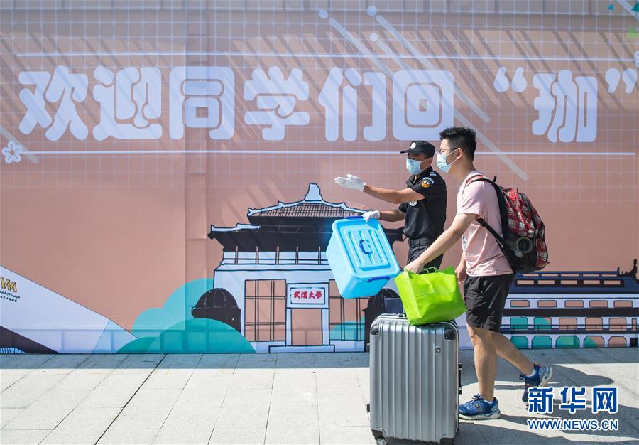 6月8日,在武漢大學,返校學生步入校園。6月8日起,武漢大學、華中科技大學、武漢理工大學、華中師范大學等多所武漢高校迎來首批返校畢業(yè)生。新華社記者肖藝九攝