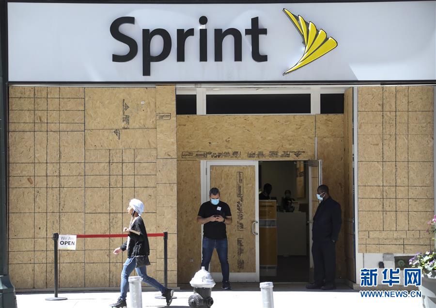 6月8日,店員在美國紐約一家電信運營商營業(yè)廳外等待顧客。在因新冠疫情進入“居家令”近三個月之后,美國紐約市于當(dāng)?shù)貢r間8日開始“解封”,進入經(jīng)濟重啟的第一階段。新華社記者王迎攝