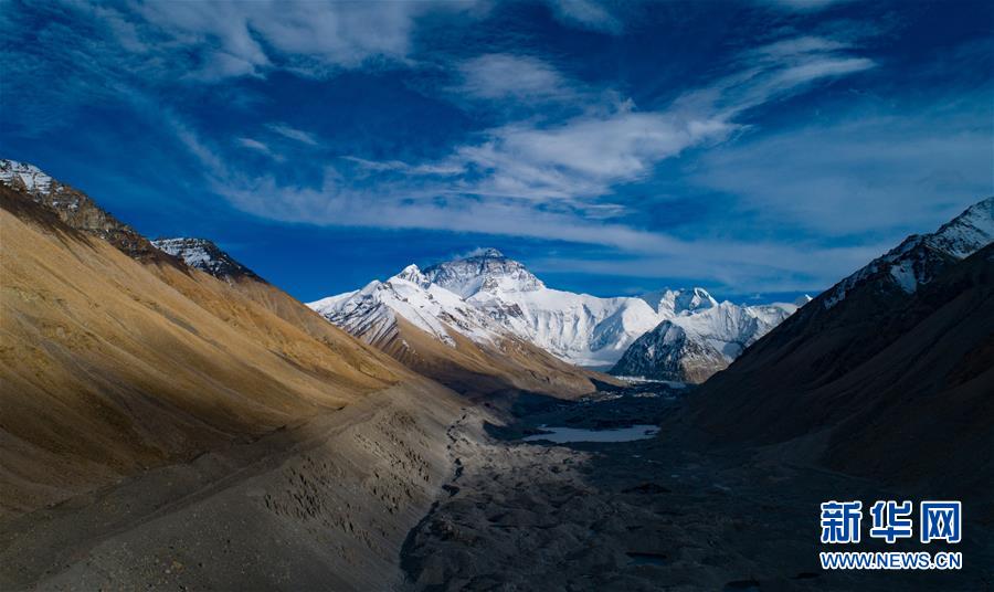 這是珠穆朗瑪峰(無人機照片,5月25日攝)。從空中俯瞰珠穆朗瑪峰北坡,生機勃勃的高原濕地、蜿蜒曲折的盤山公路、壯麗秀美的絨布冰川,還有安靜的村莊和熱鬧的登山營地,共同構(gòu)成一幅壯美畫卷。新華社記者普布扎西攝