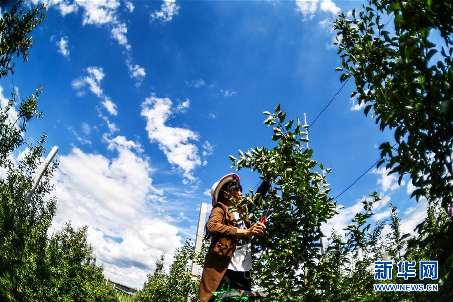 6月11日,農(nóng)民在貴州省威寧縣一處蘋果基地里疏果。近日,貴州省威寧彝族回族苗族自治縣的農(nóng)民搶抓農(nóng)時,對蘋果園進行疏果、除草等田間管理,呈現(xiàn)出一派夏管農(nóng)忙景象。威寧縣蘋果種植面積50余萬畝,蘋果產(chǎn)業(yè)已逐步成為當(dāng)?shù)剞r(nóng)民增收致富的主導(dǎo)產(chǎn)業(yè)之一。新華社記者楊文斌攝。