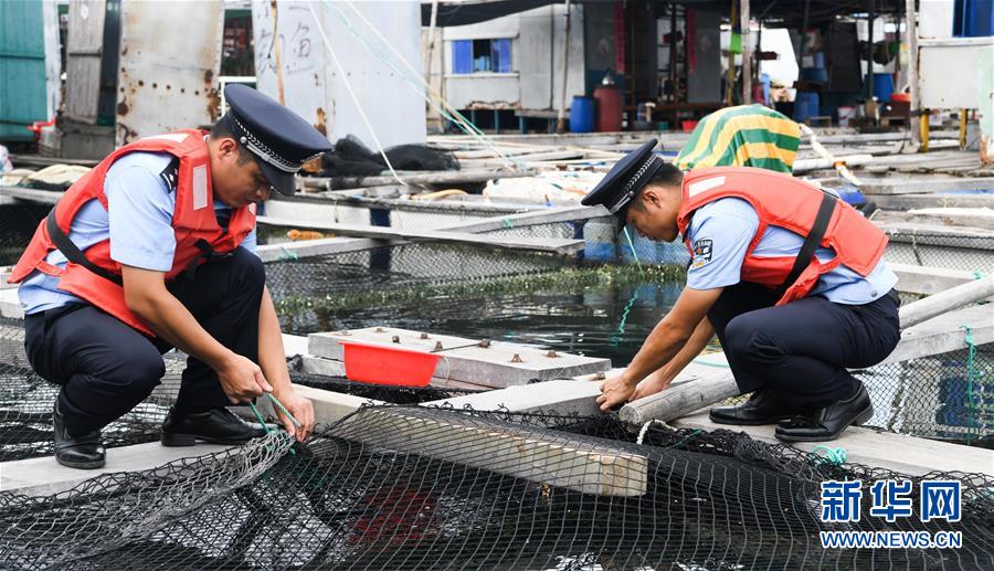 6月13日,海南省公安廳海岸警察總隊(籌備組)陵水支隊民警幫助轄區(qū)內(nèi)漁民固定漁排。當日,海南省氣象局于16時30分繼續(xù)發(fā)布臺風(fēng)四級預(yù)警。今年第2號臺風(fēng)“鸚鵡”(熱帶風(fēng)暴級)預(yù)計于14日在廣東沿海登陸。新華社記者楊冠宇攝。