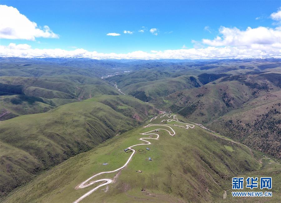 這是6月13日無人機(jī)航拍的“上南天路”和路邊的牧民居所。居住在路邊的牧民,因?yàn)橛辛诉@條路,出行更加方便。新華社記者 沈伯韓 攝