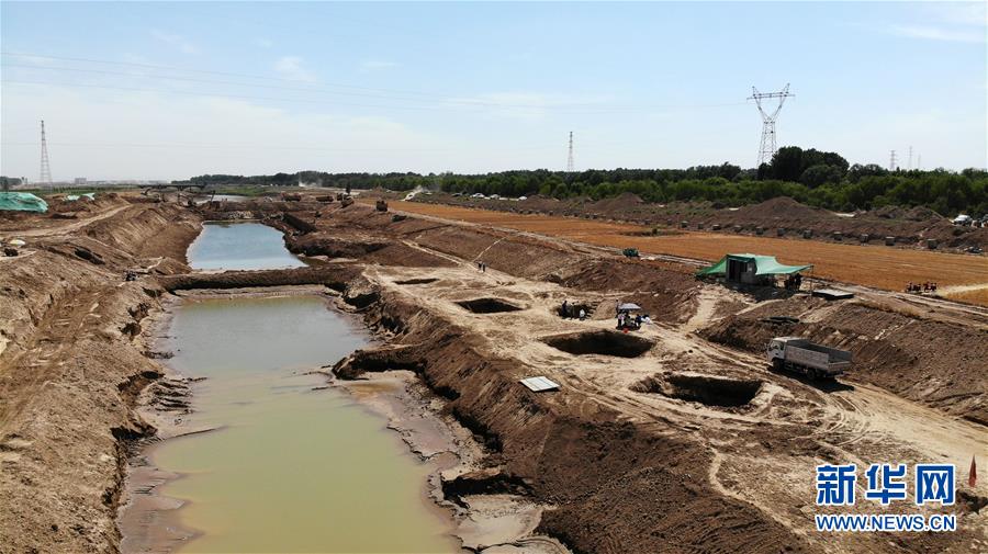 這是6月14日拍攝的山東小清河章丘段考古發(fā)掘現(xiàn)場(無人機(jī)照片)。近日,濟(jì)南市考古研究所考古工作隊(duì)在對小清河章丘段進(jìn)行考古調(diào)查和勘探時(shí),發(fā)現(xiàn)了13座年代集中在北朝末期至唐朝初期的古墓。新華社記者 王凱 攝