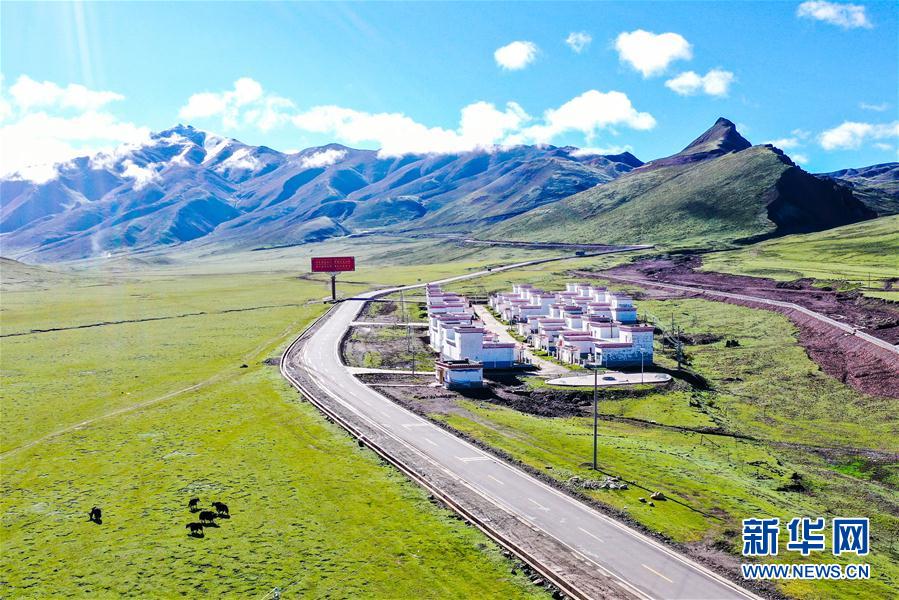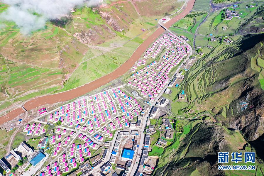 位于丁青縣嘎曲河畔的尺牘鎮(zhèn)易地扶貧搬遷點(diǎn)(6月14日攝,無人機(jī)照片)。新華社記者 白少波 攝