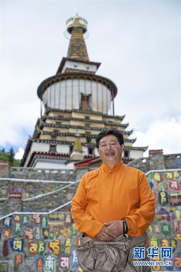 這是在四川省阿壩藏族羌族自治州壤塘縣棒托石刻公園拍攝的石刻傳習(xí)所所長班瑪羅爾吾(6月13日攝)。新華社記者 沈伯韓 攝
