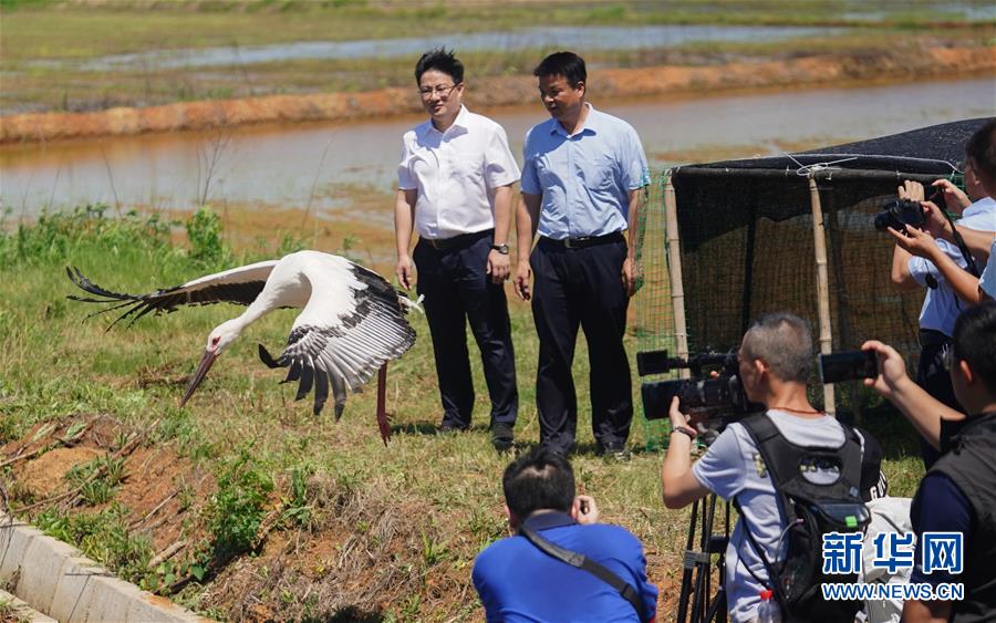 6月17日,東方白鸛從籠中飛出。