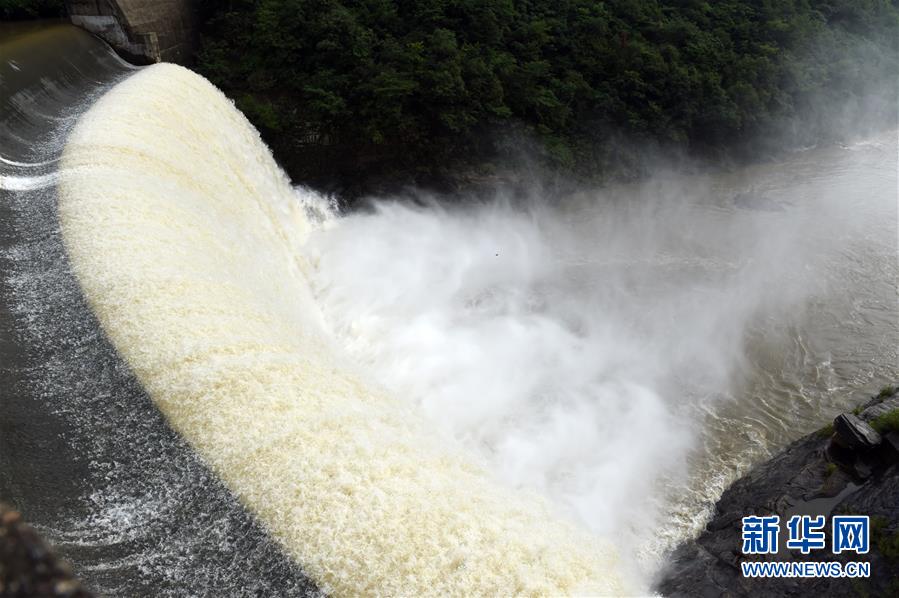6月16日,位于安徽省金寨縣的青山水庫在進(jìn)行泄洪。新華社記者 周牧 攝