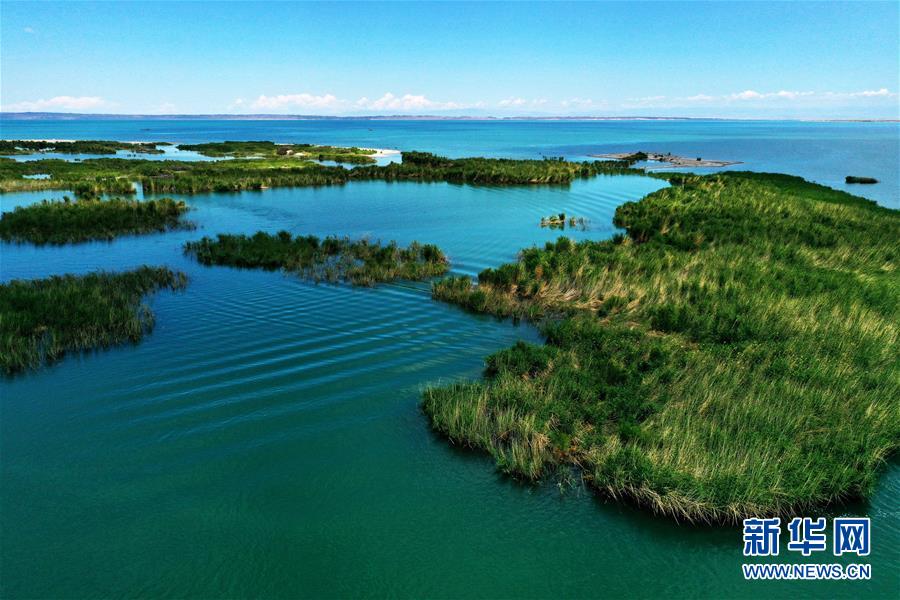 6月19日拍攝的新疆烏倫古湖國家濕地公園(無人機照片)。烏倫古湖國家濕地公園位于新疆阿勒泰地區(qū)福??h城以西,由烏倫古湖和吉力湖兩部分組成。烏倫古湖濕地公園是遷徙候鳥飛越天山和阿爾泰山的“能量補充站”,良好的濕地生態(tài)吸引著大量遷徙鳥類在此集結(jié)成群,繁殖棲息,成為一道靚麗的風(fēng)景線。新華社記者 沙達(dá)提 攝