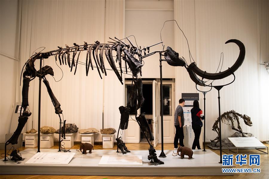 6月20日,在斯洛文尼亞首都盧布爾雅那,游客在斯洛文尼亞自然歷史博物館內(nèi)經(jīng)過猛犸象骨骼標本。新華社記者彭立軍攝