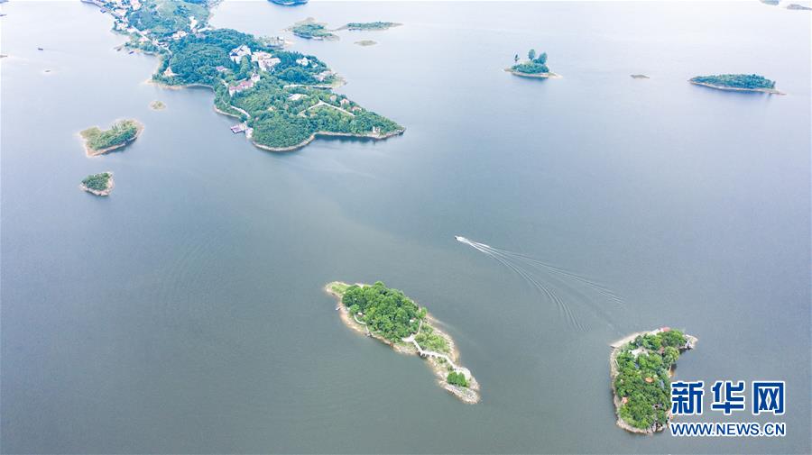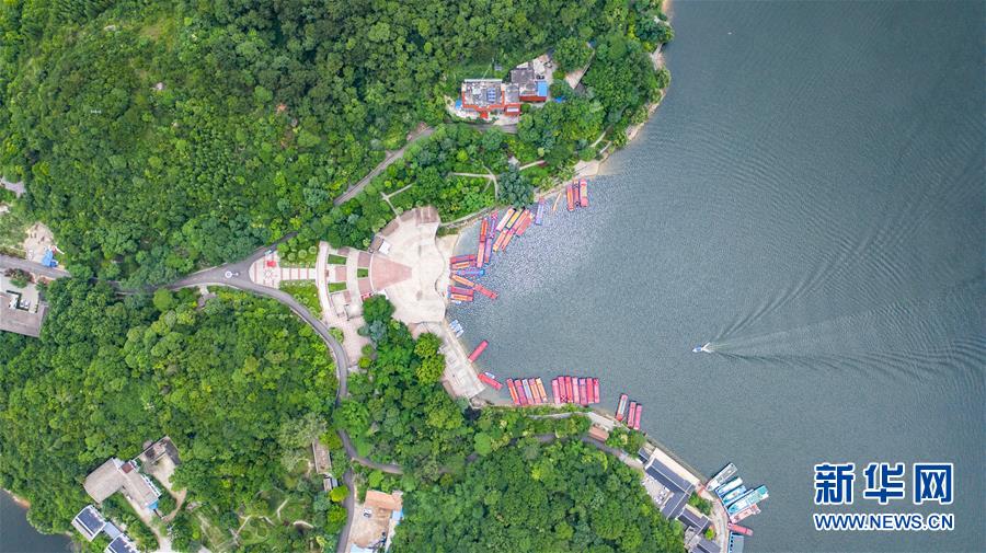 6月21日拍攝的紅楓湖景區(qū)風光(無人機照片)。夏至時節(jié),貴州省清鎮(zhèn)市紅楓湖景區(qū)草木蒼翠,秀麗的湖光山色吸引不少游客前來游玩。新華社記者陶亮攝