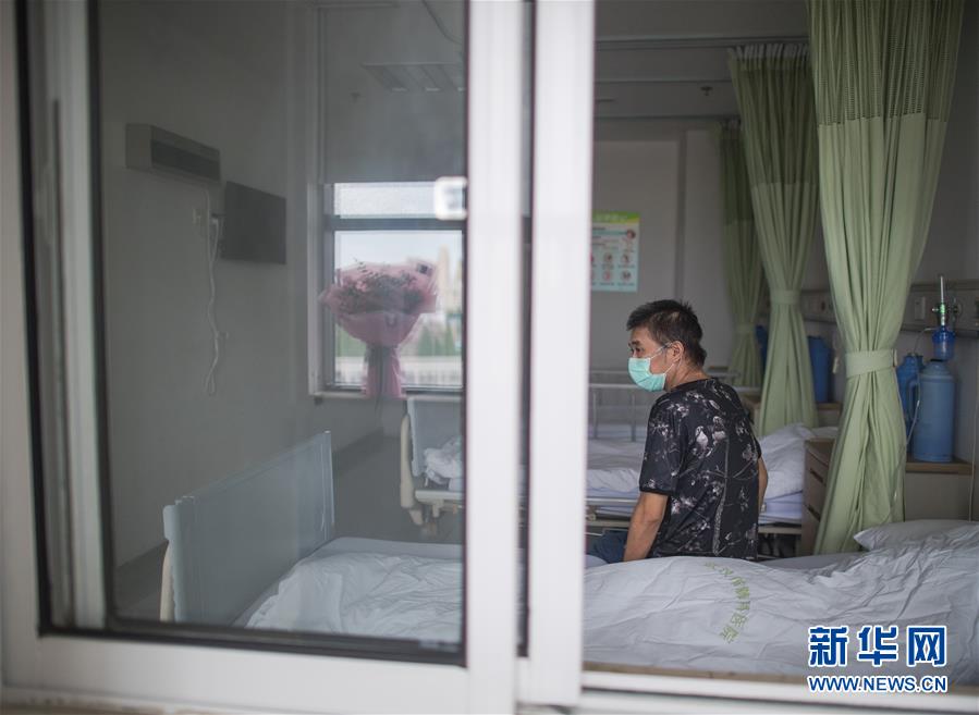 6月17日,胡定江在病房等待出院,窗臺的鮮花是他準備在出院時送給醫(yī)護人員的。用過ECMO(人工膜肺)等設備,經過多省市專家的聯(lián)合救治,在院100多天,先后經歷了ICU、過渡病房、隔離病房、普通病房的40歲新冠肺炎康復患者胡定江,目前康復良好,經專家研判,于6月17日出院。新華社記者肖藝九攝