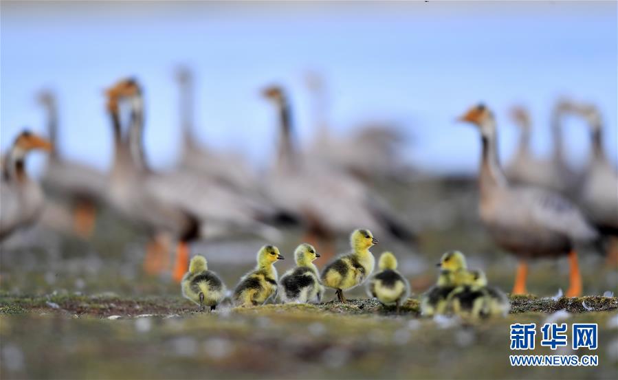 6月9日拍攝的西藏安多縣境內(nèi)嘎龍湖鳥島上的斑頭雁雛鳥。夏季的藏北高原氣候涼爽,生機(jī)盎然。經(jīng)過一個(gè)冬季在藏南的生活,斑頭雁、紅嘴鷗、黑頸鶴等紛紛遷徙至藏北深處的西藏安多縣嘎龍湖鳥島,在此棲息、產(chǎn)蛋、孵蛋。新華社記者覺果攝