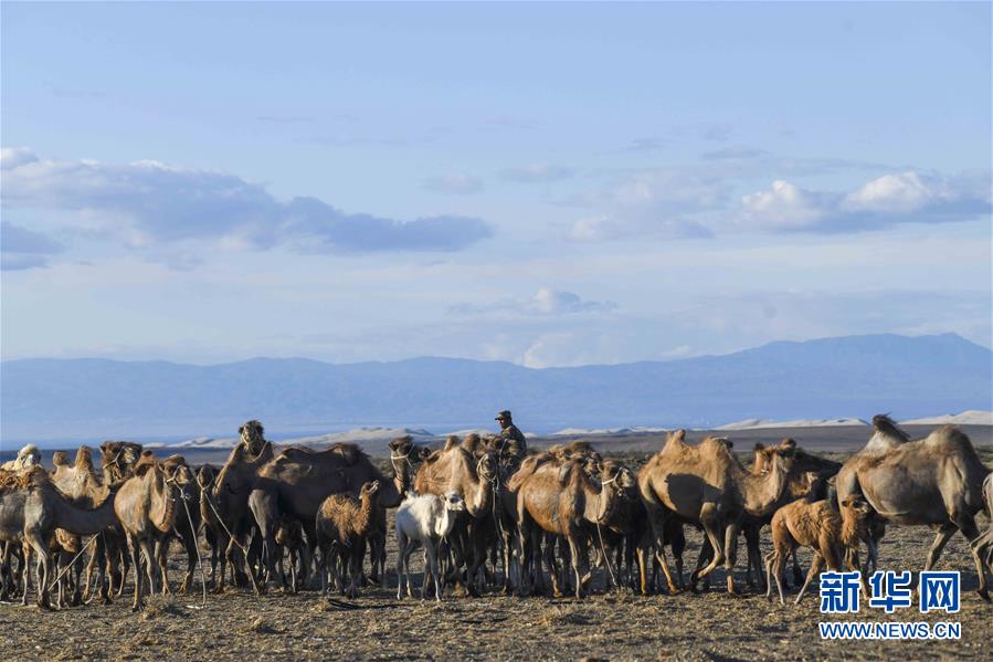 在吉木乃縣萬駝園內,一位牧民在放駱駝(6月21日攝)。新華社記者趙戈攝