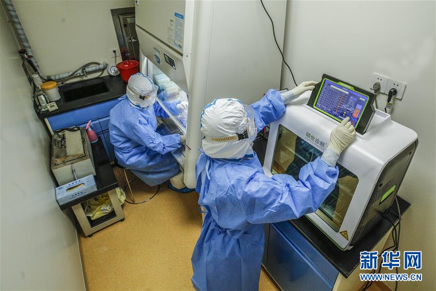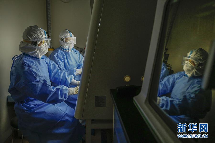 6月23日,兩位檢驗人員在實(shí)驗室內(nèi)工作。6月15日,北京市普仁醫(yī)院PCR實(shí)驗室正式啟用,并立即投入到新冠肺炎病毒核酸檢測工作之中,為新冠肺炎疫情防控增添利器。普仁醫(yī)院PCR實(shí)驗室啟用以來,除了來自本院發(fā)熱門診、門急診、病房和核酸檢測采樣點(diǎn)的樣本之外,還承接了社區(qū)以及東城區(qū)集中核酸檢測點(diǎn)采集的部分樣本。新華社記者張玉薇攝