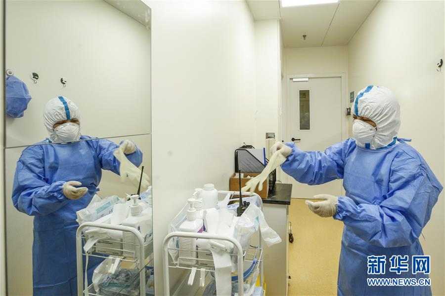 6月23日,檢驗人員在進(jìn)入污染區(qū)前穿戴防護(hù)裝備。6月15日,北京市普仁醫(yī)院PCR實(shí)驗室正式啟用,并立即投入到新冠肺炎病毒核酸檢測工作之中,為新冠肺炎疫情防控增添利器。普仁醫(yī)院PCR實(shí)驗室啟用以來,除了來自本院發(fā)熱門診、門急診、病房和核酸檢測采樣點(diǎn)的樣本之外,還承接了社區(qū)以及東城區(qū)集中核酸檢測點(diǎn)采集的部分樣本。新華社記者張玉薇攝