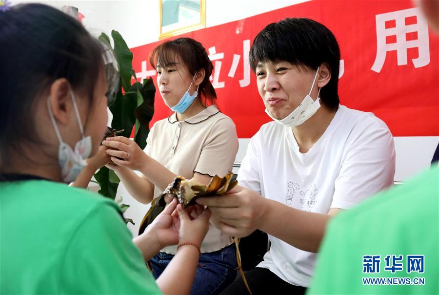 6月24日,在河北省廊坊市安次區(qū)西小街社區(qū)活動(dòng)中心,孩子們將親手包制的粽子送給母親品嘗。端午節(jié)臨近,各地舉行包粽子、做香包、賽龍舟等豐富多彩的民俗文化活動(dòng),迎接傳統(tǒng)佳節(jié)的到來。新華社記者王曉攝