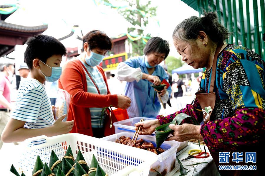 6月24日,游客在上海閔行區(qū)召稼樓古鎮(zhèn)一攤位學(xué)包粽子。當(dāng)日,“我們的節(jié)日·召樓粽情”2020年閔行浦江端午文化節(jié)開幕。端午節(jié)臨近,各地舉行包粽子、做香包、賽龍舟等豐富多彩的民俗文化活動(dòng),迎接傳統(tǒng)佳節(jié)的到來。新華社記者張建松攝