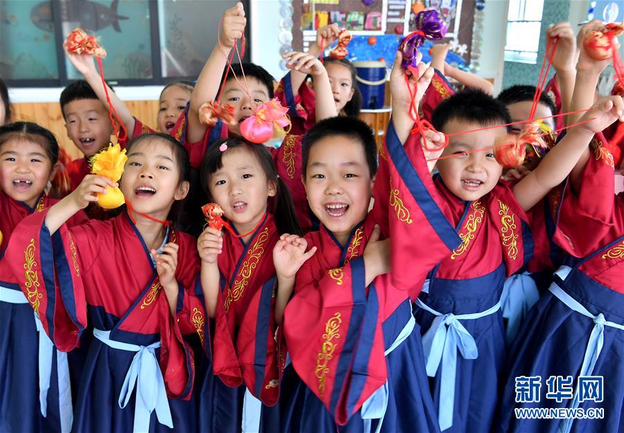 6月24日,西安市航天城第一幼兒園的學生展示自己制作的香包。端午節(jié)臨近,各地舉行包粽子、做香包、賽龍舟等豐富多彩的民俗文化活動,迎接傳統(tǒng)佳節(jié)的到來。新華社記者劉瀟攝