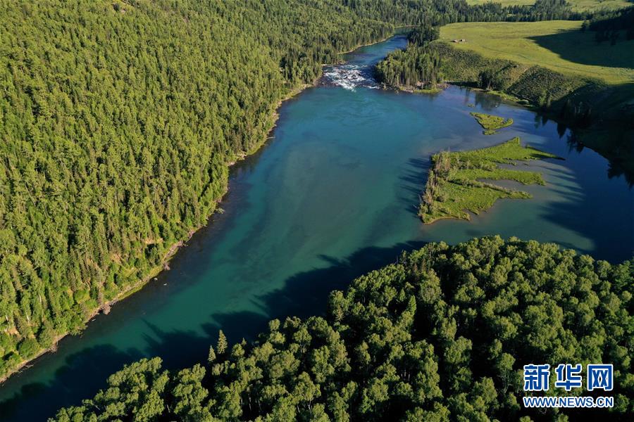 這是6月25日拍攝的新疆喀納斯景區(qū)風光(無人機照片)。新華社記者 沙達提 攝