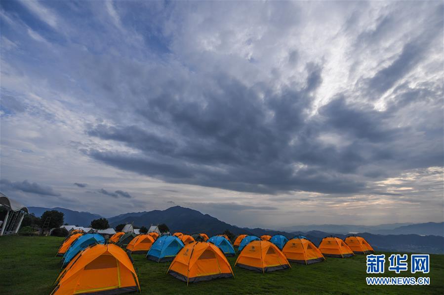 6月27日在杭州市富陽區(qū)常安鎮(zhèn)永安山頂拍攝的帳篷酒店。近期,浙江省杭州市富陽區(qū)場口鎮(zhèn)、常安鎮(zhèn)和湖源鄉(xiāng)組團(tuán)開啟了一場夏季“綠水青山嘉年華”。這幾個(gè)壺源溪流域鄉(xiāng)鎮(zhèn)整合生態(tài)旅游資源,組團(tuán)開發(fā)山村旅游項(xiàng)目,游客可以參與壺源溪水上游樂、露營永安山頂、特色農(nóng)產(chǎn)品集市和瓜果節(jié)等特色活動。新華社記者徐昱攝
