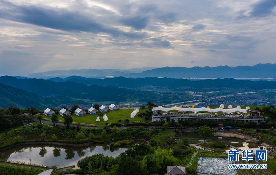 空中俯瞰杭州市富陽區(qū)常安鎮(zhèn)永安山頂?shù)膸づ窬频辏?月27日攝,無人機(jī)照片)。近期,浙江省杭州市富陽區(qū)場口鎮(zhèn)、常安鎮(zhèn)和湖源鄉(xiāng)組團(tuán)開啟了一場夏季“綠水青山嘉年華”。這幾個(gè)壺源溪流域鄉(xiāng)鎮(zhèn)整合生態(tài)旅游資源,組團(tuán)開發(fā)山村旅游項(xiàng)目,游客可以參與壺源溪水上游樂、露營永安山頂、特色農(nóng)產(chǎn)品集市和瓜果節(jié)等特色活動。新華社記者徐昱攝
