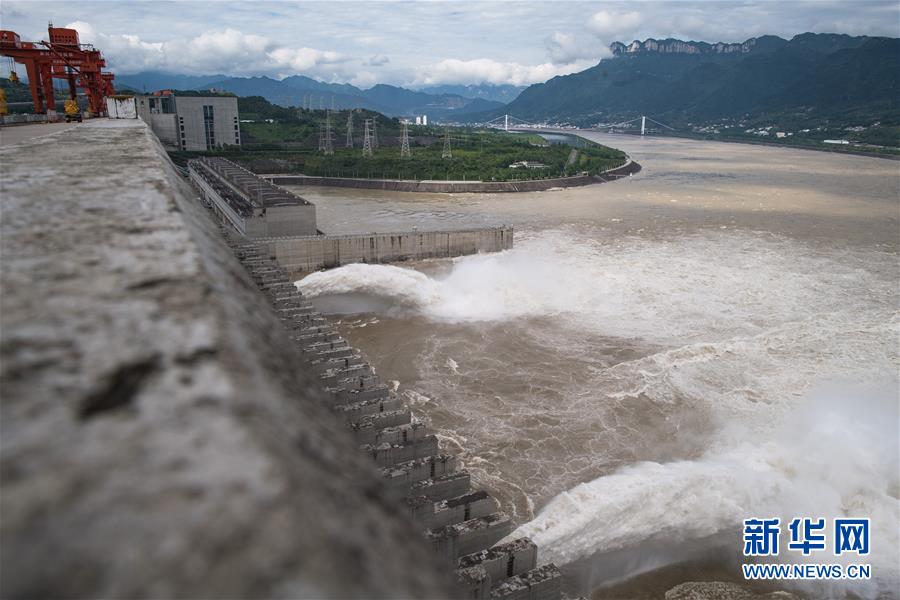 6月29日,三峽樞紐開啟泄洪孔泄洪。受長江中上游強(qiáng)降雨影響,進(jìn)入三峽水庫的水量持續(xù)增多。為騰出一定庫容迎接近期可能到來的洪水,三峽樞紐于6月29日上午開啟兩個(gè)泄洪孔,加大下泄流量。這是三峽樞紐今年首次泄洪。28日14時(shí),三峽水庫入庫流量達(dá)4萬立方米/秒,是27日14時(shí)的兩倍。為應(yīng)對此輪來水,長江防總要求將三峽水庫下泄流量上調(diào)至日均3.5萬立方米/秒。新華社發(fā)(鄭家裕攝)