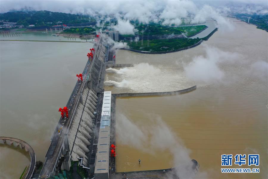 6月29日,三峽樞紐開啟泄洪孔泄洪(無人機照片)。受長江中上游強降雨影響,進入三峽水庫的水量持續(xù)增多。為騰出一定庫容迎接近期可能到來的洪水,三峽樞紐于6月29日上午開啟兩個泄洪孔,加大下泄流量。這是三峽樞紐今年首次泄洪。28日14時,三峽水庫入庫流量達4萬立方米/秒,是27日14時的兩倍。為應對此輪來水,長江防總要求將三峽水庫下泄流量上調至日均3.5萬立方米/秒。新華社發(fā)(黃善軍攝)
