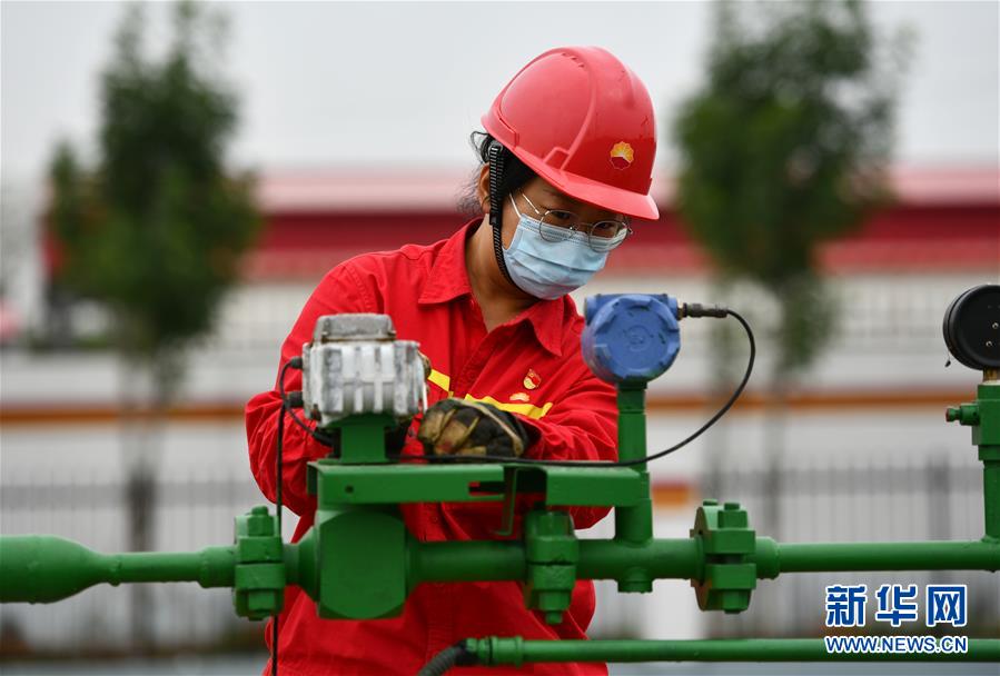 6月29日,馮萌萌在大港油田采油二廠二區(qū)內(nèi)查看設(shè)備運(yùn)行情況。新華社記者李然攝