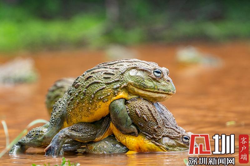上演“全武行”!非洲雄性牛蛙為爭奪雌性伴侶大打出手