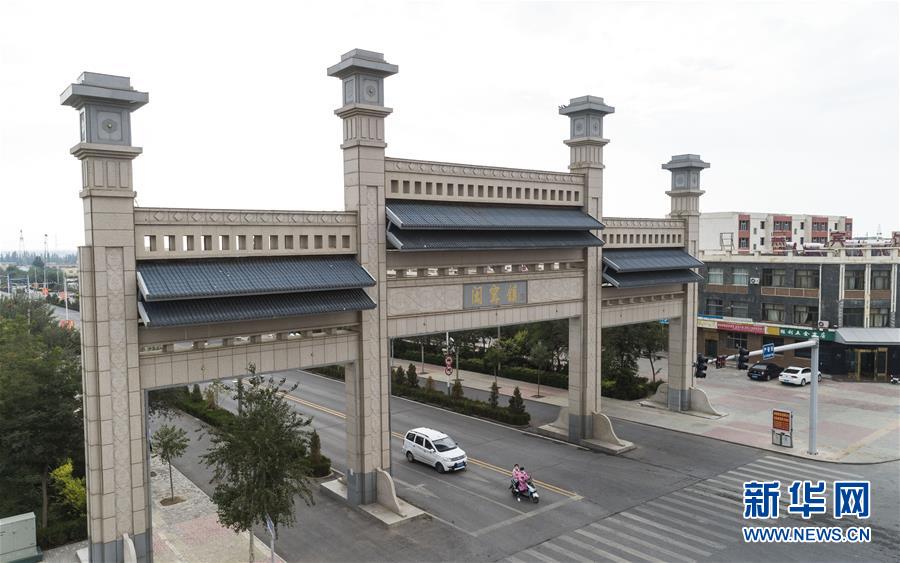 寧夏銀川市永寧縣閩寧鎮(zhèn)街景(無人機(jī)照片,2019年9月3日攝)。新華社記者王鵬攝