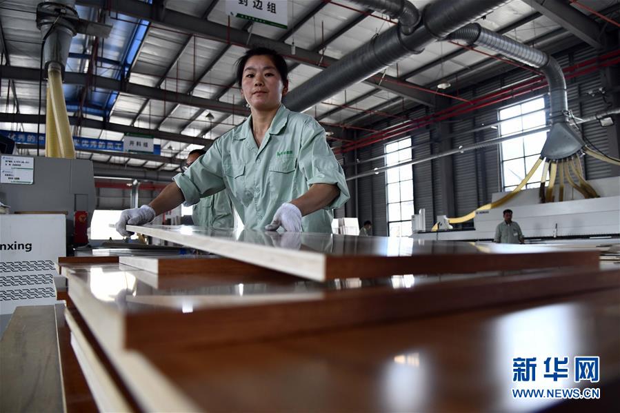6月30日,在費縣云峰莫干山裝飾材料有限公司,工人在加工定制家具面板。地處沂蒙革命老區(qū)的山東省臨沂市費縣探沂鎮(zhèn)近年來圍繞鄉(xiāng)村振興戰(zhàn)略,謀劃“一鎮(zhèn)一業(yè)”,以木業(yè)產(chǎn)業(yè)為抓手,積極引導(dǎo)全鎮(zhèn)3136家木業(yè)企業(yè)進行園區(qū)化、集約化、智能化發(fā)展,成為遠(yuǎn)近聞名的“木業(yè)特色小鎮(zhèn)”。2019年,該鎮(zhèn)規(guī)模以上工業(yè)總產(chǎn)值187億元,農(nóng)民人均純收入2萬元左右,木業(yè)產(chǎn)業(yè)有力助推當(dāng)?shù)氐泥l(xiāng)村振興。新華社記者郭緒雷攝