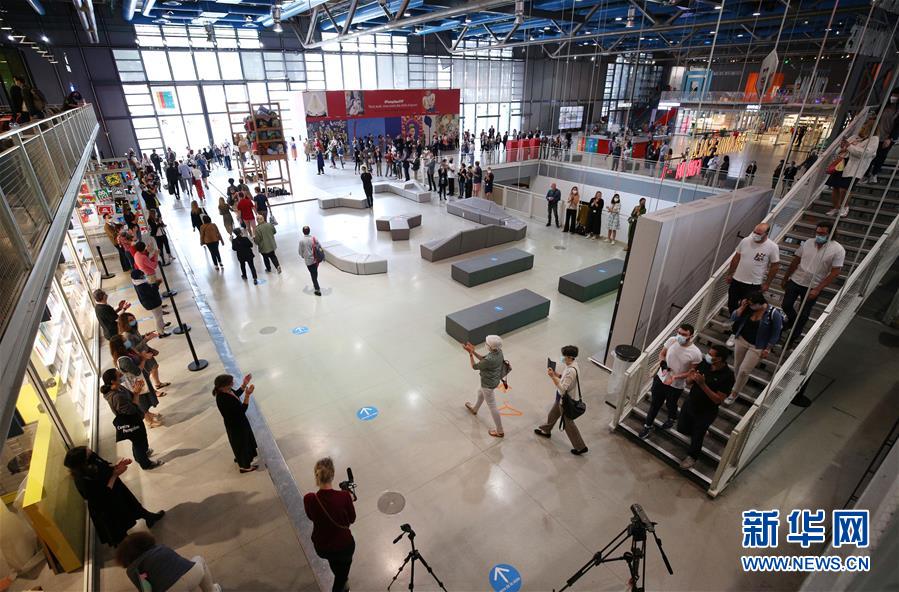 7月1日,法國巴黎蓬皮杜藝術中心的工作人員鼓掌歡迎參觀者。因新冠疫情關閉的法國巴黎蓬皮杜藝術中心于7月1日重新開門迎客。目前,中心只開放6層的臨時展區(qū)和4、5層的現(xiàn)代藝術常設展區(qū)。參觀者需提前網上預約參觀時段,11歲以上參觀者須佩戴口罩,參觀過程中保持安全距離。新華社記者高靜攝