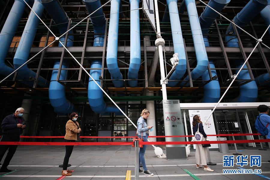 7月1日,參觀者在法國巴黎蓬皮杜藝術中心外排隊等待。因新冠疫情關閉的法國巴黎蓬皮杜藝術中心于7月1日重新開門迎客。目前,中心只開放6層的臨時展區(qū)和4、5層的現(xiàn)代藝術常設展區(qū)。參觀者需提前網上預約參觀時段,11歲以上參觀者須佩戴口罩,參觀過程中保持安全距離。新華社記者高靜攝