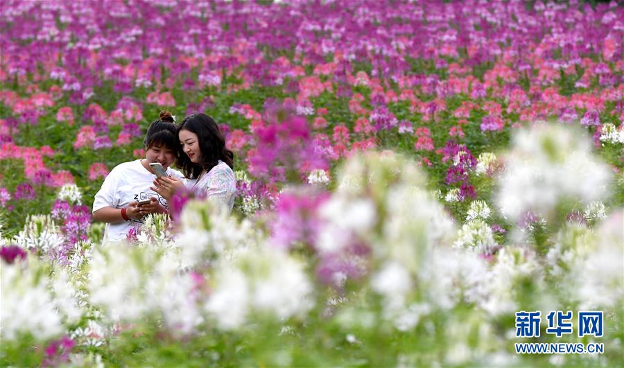 7月1日,市民在位于留壩縣城的金水灣花海游玩。近日,陜西省漢中市留壩縣金水灣花海的各類鮮花次第綻放,絢麗繽紛。新華社記者劉瀟攝