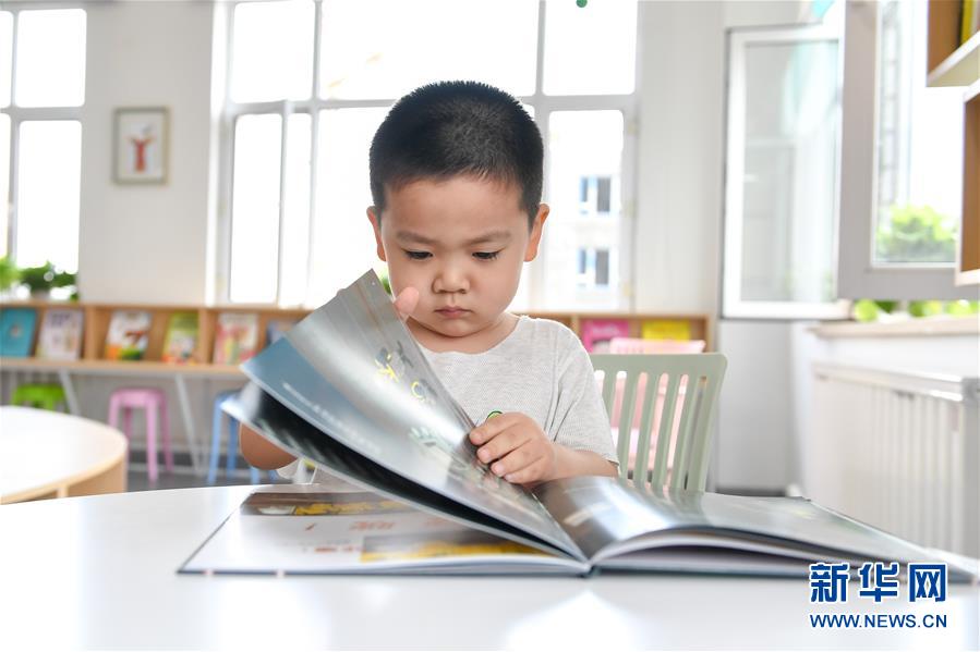 7月2日,在長春市少年兒童圖書館平陽社區(qū)繪本主題分館,小朋友閱讀繪本。長春市少年兒童圖書館平陽社區(qū)繪本主題分館位于南關區(qū)曙光街道平陽社區(qū),目前藏書約5000冊。該館于6月30日揭牌開館,由長春市少年兒童圖書館和南關區(qū)曙光街道辦事處共同打造,是長春首個繪本主題圖書分館??蔀橹苓吘用窈蛢和峁﹫D書借閱、數(shù)字閱讀體驗、親子活動、少兒公益活動等服務。新華社記者張楠攝