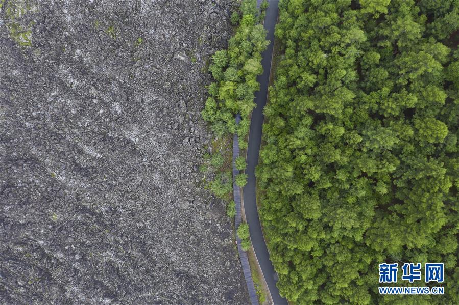 這是7月3日拍攝的五大連池風(fēng)景區(qū)(無人機(jī)照片)。 時(shí)下,五大連池風(fēng)景區(qū)內(nèi)植被蔥蘢,在火山、熔巖臺地、火山堰塞湖的映襯下,景色壯美。 五大連池風(fēng)景區(qū)位于黑龍江省黑河市,是較為典型和完整的近代火山噴發(fā)遺跡,被喻為“天然的火山博物館”。 新華社記者 謝劍飛 攝