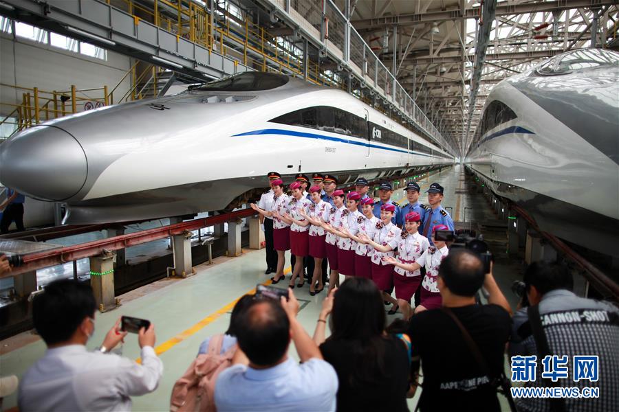 7月3日,新聞媒體在貴陽采訪拍攝擔(dān)任首發(fā)列車值乘工作的班組人員。 新華社記者 劉續(xù) 攝