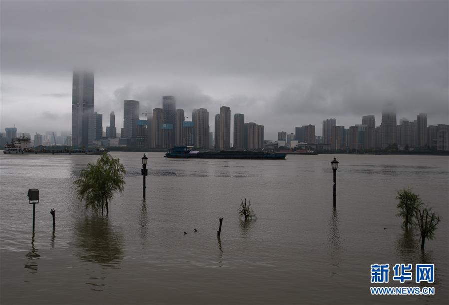 7月6日,船舶經(jīng)過漢口江灘附近水域。記者6日從武漢市防汛抗旱指揮部辦公室獲悉,5日以來,武漢遭暴雨襲擊,全市多處路段漬水。至6日4時,長江漢口站超設(shè)防水位1.79米,漢江新溝站超警戒水位0.01米。鑒于當(dāng)前水雨汛情和漬澇情況,武漢市從6日5時起,將排澇應(yīng)急響應(yīng)級別提升至Ⅱ級;從6時30分起,將防汛應(yīng)急響應(yīng)級別提升至Ⅱ級。新華社記者肖藝九攝