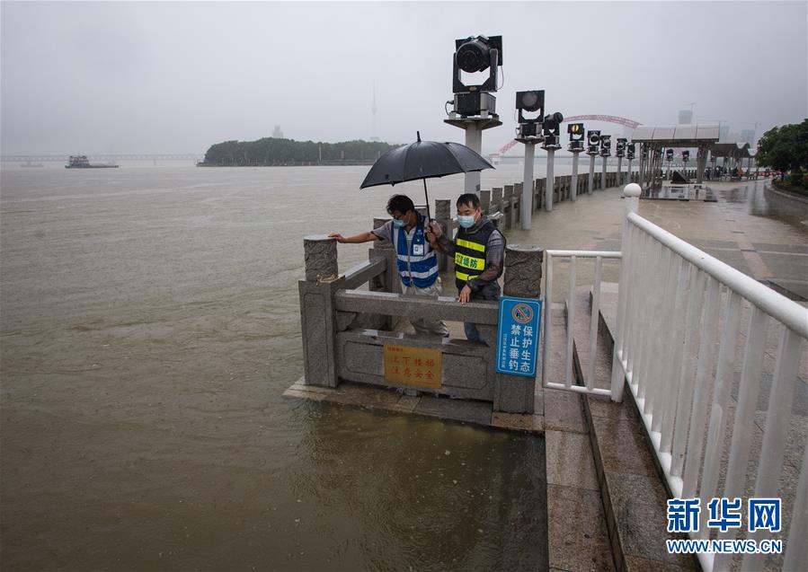 7月6日,工作人員在武漢龍王廟觀察水情。記者6日從武漢市防汛抗旱指揮部辦公室獲悉,5日以來,武漢遭暴雨襲擊,全市多處路段漬水。至6日4時(shí),長江漢口站超設(shè)防水位1.79米,漢江新溝站超警戒水位0.01米。鑒于當(dāng)前水雨汛情和漬澇情況,武漢市從6日5時(shí)起,將排澇應(yīng)急響應(yīng)級(jí)別提升至Ⅱ級(jí);從6時(shí)30分起,將防汛應(yīng)急響應(yīng)級(jí)別提升至Ⅱ級(jí)。新華社記者肖藝九攝