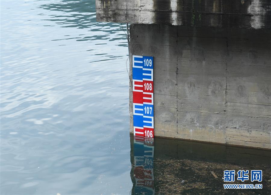 7月6日拍攝的新安江水庫(kù)的水位標(biāo)尺。受連續(xù)強(qiáng)降雨影響,位于浙江建德的新安江水庫(kù)水位持續(xù)上漲。據(jù)浙江省水利廳發(fā)布的數(shù)據(jù),截至7月6日14時(shí),水庫(kù)水位上漲至106.54米,超汛限水位0.04米,且仍在上漲中。為確保水庫(kù)防洪安全、合理利用水資源,新安江水庫(kù)預(yù)計(jì)于7月7日開(kāi)啟泄洪閘泄洪。新華社記者翁忻旸攝