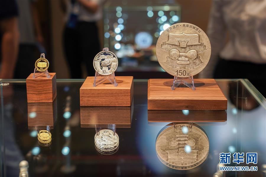 這是首發(fā)儀式現(xiàn)場展示的紀(jì)念幣(7月6日攝)。7月6日,正值良渚古城遺址成功申報(bào)世界文化遺產(chǎn)一周年。中國人民銀行于當(dāng)天發(fā)行世界遺產(chǎn)(良渚古城遺址)金銀紀(jì)念幣一套,首發(fā)儀式在浙江良渚古城遺址公園舉行。新華社記者殷曉圣攝