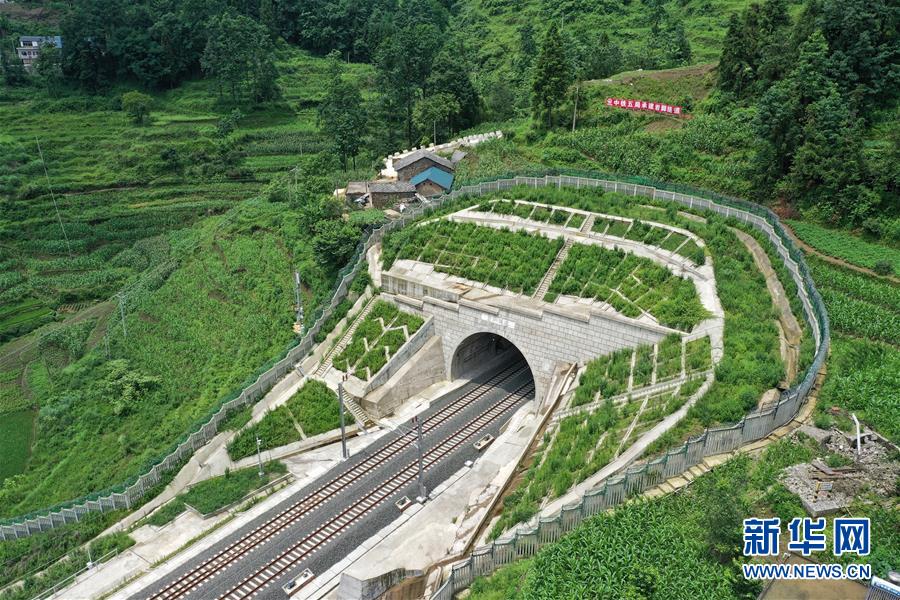 7月6日拍攝的安六鐵路巖腳隧道(無人機照片)。當日,新建貴州安六鐵路(安順至六盤水)聯(lián)調(diào)聯(lián)試工作進入收尾階段,開通前的各項準備工作已基本就緒。安六鐵路線路全長約125公里,設(shè)計時速250公里,為國家I級雙線客運專線。建成投用后,貴陽至六盤水的鐵路旅行時間可從現(xiàn)在的3.5小時縮短為1小時左右,貴州省六盤水市將全面接入全國高鐵網(wǎng)。新華社記者劉續(xù)攝