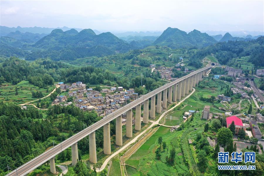 7月6日拍攝的安六鐵路彭家沖一號大橋附近的景觀(無人機照片)。當日,新建貴州安六鐵路(安順至六盤水)聯(lián)調(diào)聯(lián)試工作進入收尾階段,開通前的各項準備工作已基本就緒。安六鐵路線路全長約125公里,設(shè)計時速250公里,為國家I級雙線客運專線。建成投用后,貴陽至六盤水的鐵路旅行時間可從現(xiàn)在的3.5小時縮短為1小時左右,貴州省六盤水市將全面接入全國高鐵網(wǎng)。新華社記者劉續(xù)攝