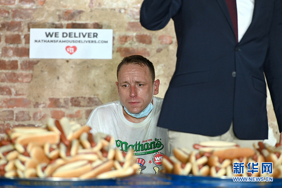 7月4日,美國紐約布魯克林舉行一年一度的國際吃熱狗比賽,喬伊·切斯納特以吃75個(gè)熱狗的成績贏得男子賽區(qū)冠軍,創(chuàng)下了新的世界紀(jì)錄。(圖片來源:視覺中國)