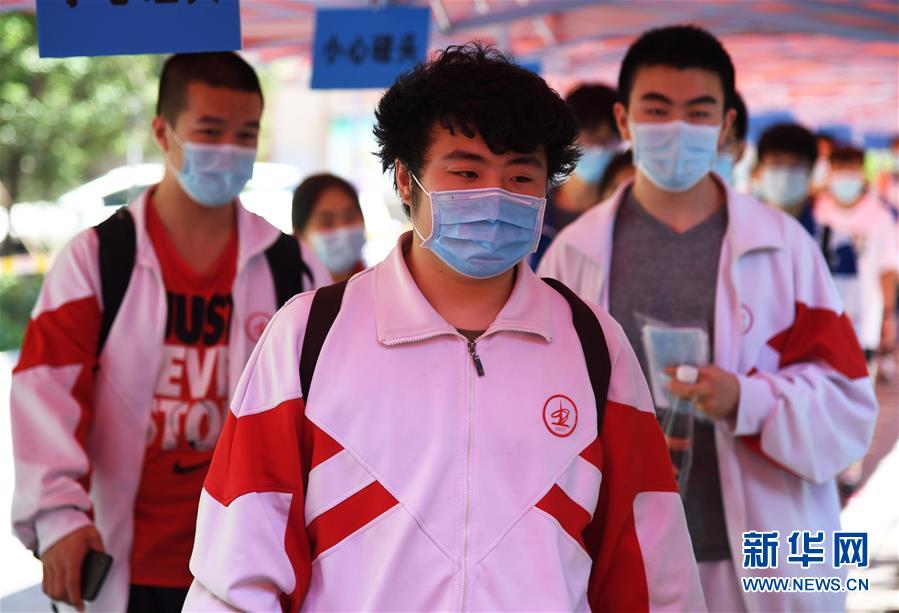 7月7日,在湖北省武漢市東湖中學(xué)考點,考生結(jié)束首場科目考試后走出考場。當(dāng)日,2020年高考拉開帷幕。新華社記者程敏攝