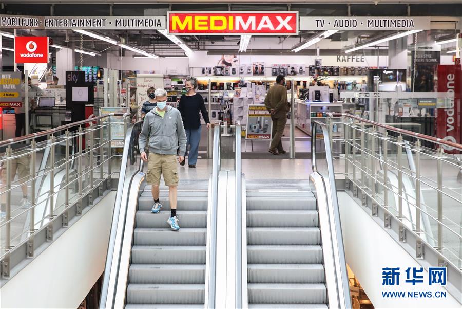 7月7日,佩戴口罩的顧客在德國(guó)首都柏林一家購(gòu)物中心購(gòu)物。針對(duì)有地方官員呼吁取消民眾乘坐公交車(chē)和在商場(chǎng)購(gòu)物時(shí)須戴口罩的規(guī)定,德國(guó)聯(lián)邦政府6日表示,支持延續(xù)“口罩強(qiáng)制令”。4月底,德國(guó)全部16個(gè)聯(lián)邦州陸續(xù)出臺(tái)“口罩強(qiáng)制令”,即居民在乘坐公交車(chē)和購(gòu)物時(shí)須佩戴口罩。新華社記者單宇琦攝