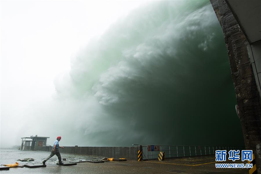 7月7日,新安江電廠工作人員從開(kāi)啟7孔泄洪的新安江水庫(kù)壩底經(jīng)過(guò)。受持續(xù)降水影響,浙江新安江水庫(kù)水位持續(xù)快速上升。繼當(dāng)日10時(shí)開(kāi)啟3孔、12時(shí)開(kāi)啟5孔泄洪后,新安江水庫(kù)于16時(shí)增加到7孔泄洪。新安江水庫(kù)是華東地區(qū)最大的水庫(kù),在錢(qián)塘江流域的防洪度汛中起到關(guān)鍵作用。新華社記者翁忻旸攝